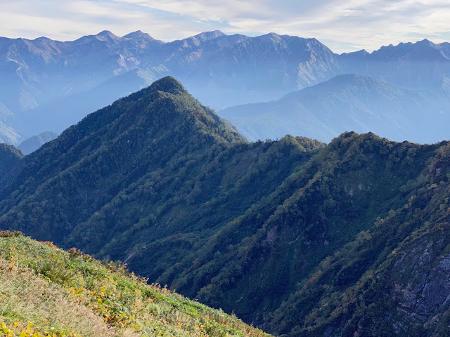 鞍部に小さく池ノ平小屋が見えます